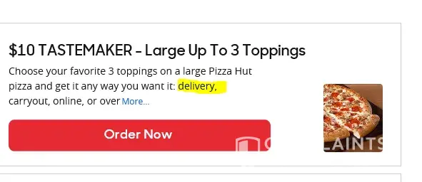 Read full complaintRefused to deliver the $10 tastemaker pizza