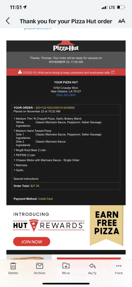 I have tried to report this 2 or 3 times. I'm told that Pizza Hut cares and yet I hear no more once I report this. I had a terribly messed up order. And another complaint is that my local pizza hut's prices are sky high in this time of Covid when so many are struggling for work and income. So I don't get to order pizza very often. But I had a really bad...
