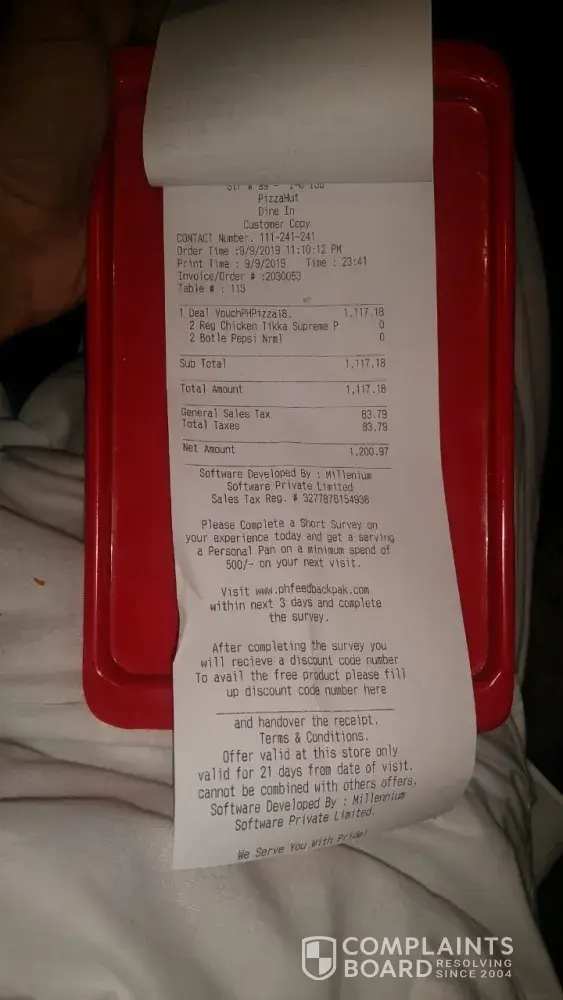 Read full complaintPizza