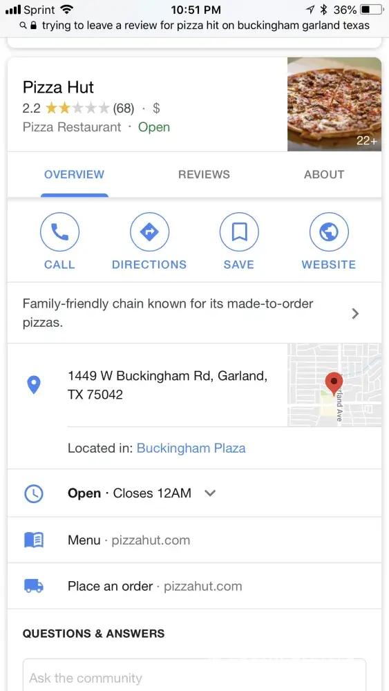 Do not order from the pizza hut located at:7333 sw 152nd ave, miami, fl 33193