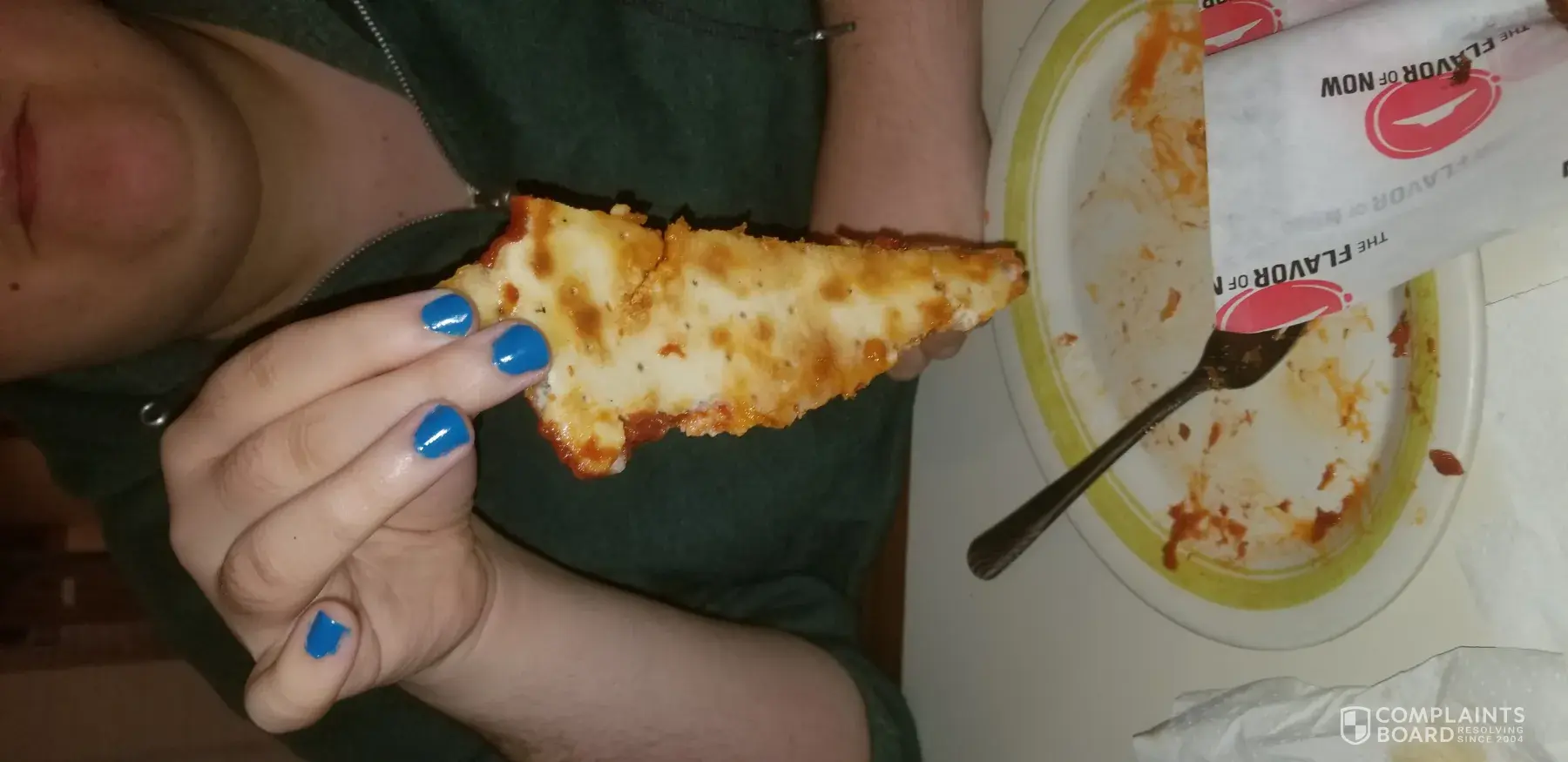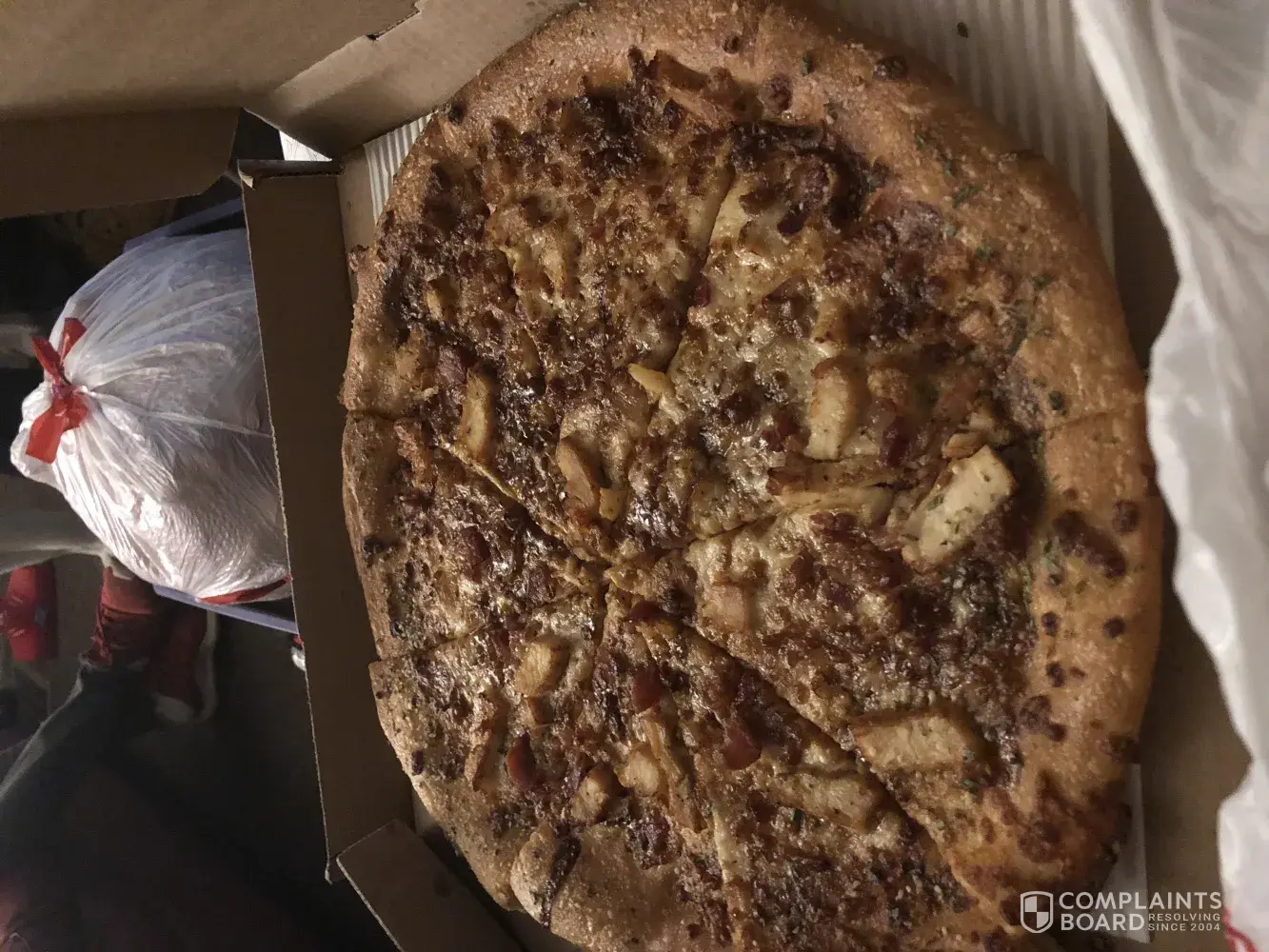 I had an online order of multiple items. I spent $41 plus I am a regular costumer. My pizza came and was completely burnt and 45 minutes later then estimated delivery time. I called the location and I was told they had a couple people call about pizza being burnt and they have 3 more deliveries and couldn't replace my pizza. I am very upset I buy pizza once to twice a week and to receive it burnt and can't not get it replace is very unprofessional. I also uploaded two photos.