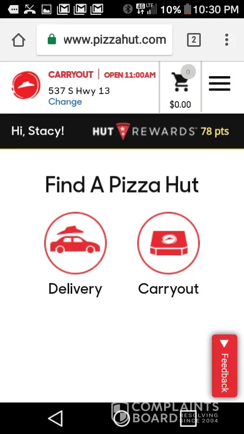 I think that is too long but agreed because it was my only choice. After over an hour I called back. They did not answer the phone. A corporate rep answered. But I did not have the info they needed to follow up. I called back again to check on delivery status. They finally answered. Told me they had no record of my order. I did not want to place a second order. By now it is late and I was upset that we would not be getting to eat. I got No apologies or offer of compensations..That is 2 for 2 on bad experience at Pizza Hut. We do not have branch in my hometown. I will not seek out Pizza hut in my travels in the future. I guess Pizza Hut does not want business from travelers. Or care about negative advertising. Because I will definitely tell others about the bad experience. Next time I will get gas station pizza.. Good or bad. At least I won't go hungry