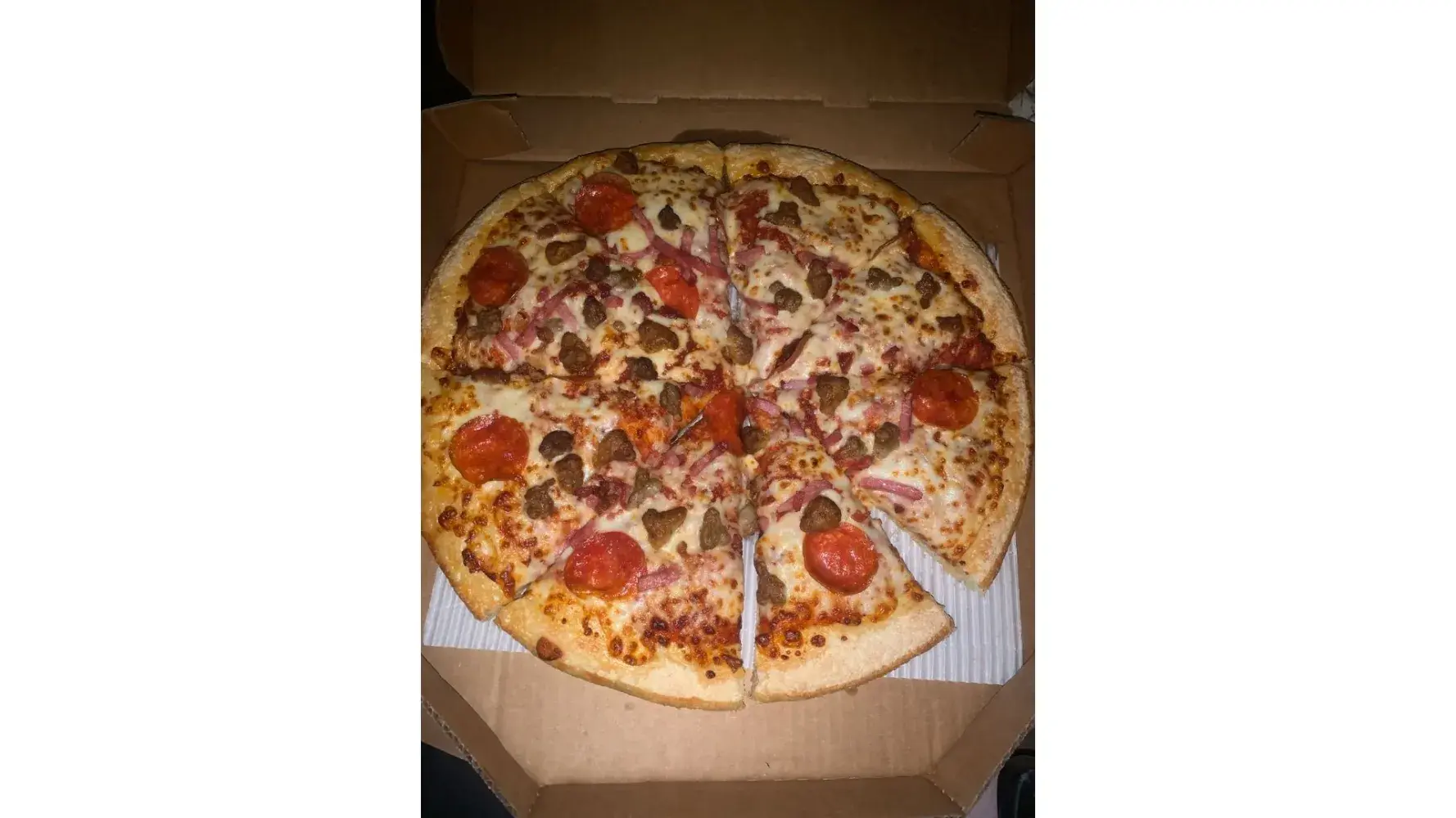 Desired outcome: failed, i want a real meat lovers pizza. why doesnt my pizza look like the advertised picture on the website.. i had 6 pepperonis and barely sausauge i paid 18$ for 8 slices of some [censored]