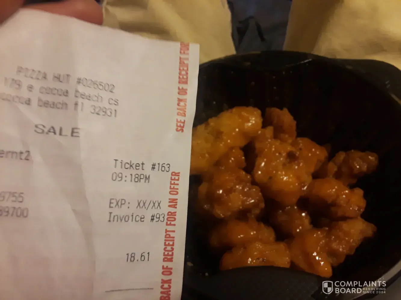 First off I've always been a Pizza Hut fan. Which is why I am doing this. But to be charged $3 to go down the street, and then another $15+ to receive what I got is shameful. Just saying, would you be alright with that? Come on. That's highway robbery and definitely isnt a good way to keep your wings selling. So, as a fan of yours, can ya just fix this so I don't have to end up going somewhere else? Thanks
