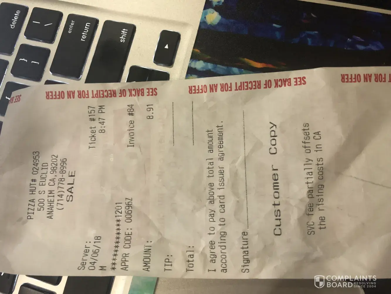 I've had to contact my local Pizza Hut on three different occasions because they tend to tip themselves after I've tipped them cash. I always keep my receipt and check it against my cc the next day. I've contact the store manager who gives me the "sorry about that" line and reimburses me the tip, but this time I've had enough! It is against the law for any restaurant/driver to tip themselves after you've put a line across the tip area on the ticket. It's always " I will contact the Area Coach" about this. They've never suggested any courtesy items for my inconveniences.
