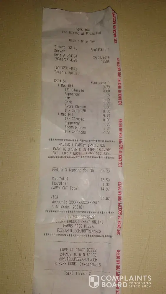 Pizza Hut have the two topping pizza for $5.99 each. I order two 2-topping pizzas, cheese sticks, and some lemon pepper bone in wings. My family and I had dine in. The server took our order and I asked what were the specials that they had and he told me about the 2- topping pizzas for $5.99. I told him I wanted two of them plus the food that I mention at top. He said okay. He checked on us every once in a while but when it came upon getting the receipt, he wasn't anywhere to be found. So the cashier overcharged me for the two pizzas which was 9.87 twice instead of 5.99. For one, she was on her cellphone cashing out my order. Poor customer service... I asked the manager about my ticket because I had my sister to go pay for our food with my card. He told me that the money had went through and all he could do was to give me a $25 credit which will have to be used within next week. I want my money back because the service was just awful and will never go back...