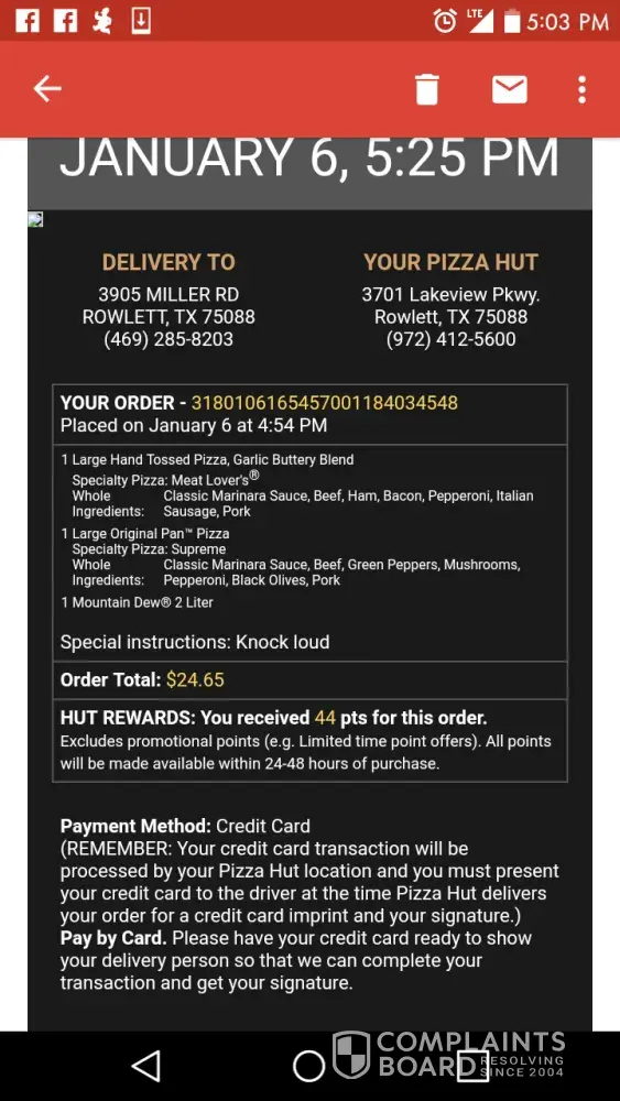I ordered a pizza-YOUR ORDER - 3180106150043001243034030 -Placed on January 6 at 4:00 PM,