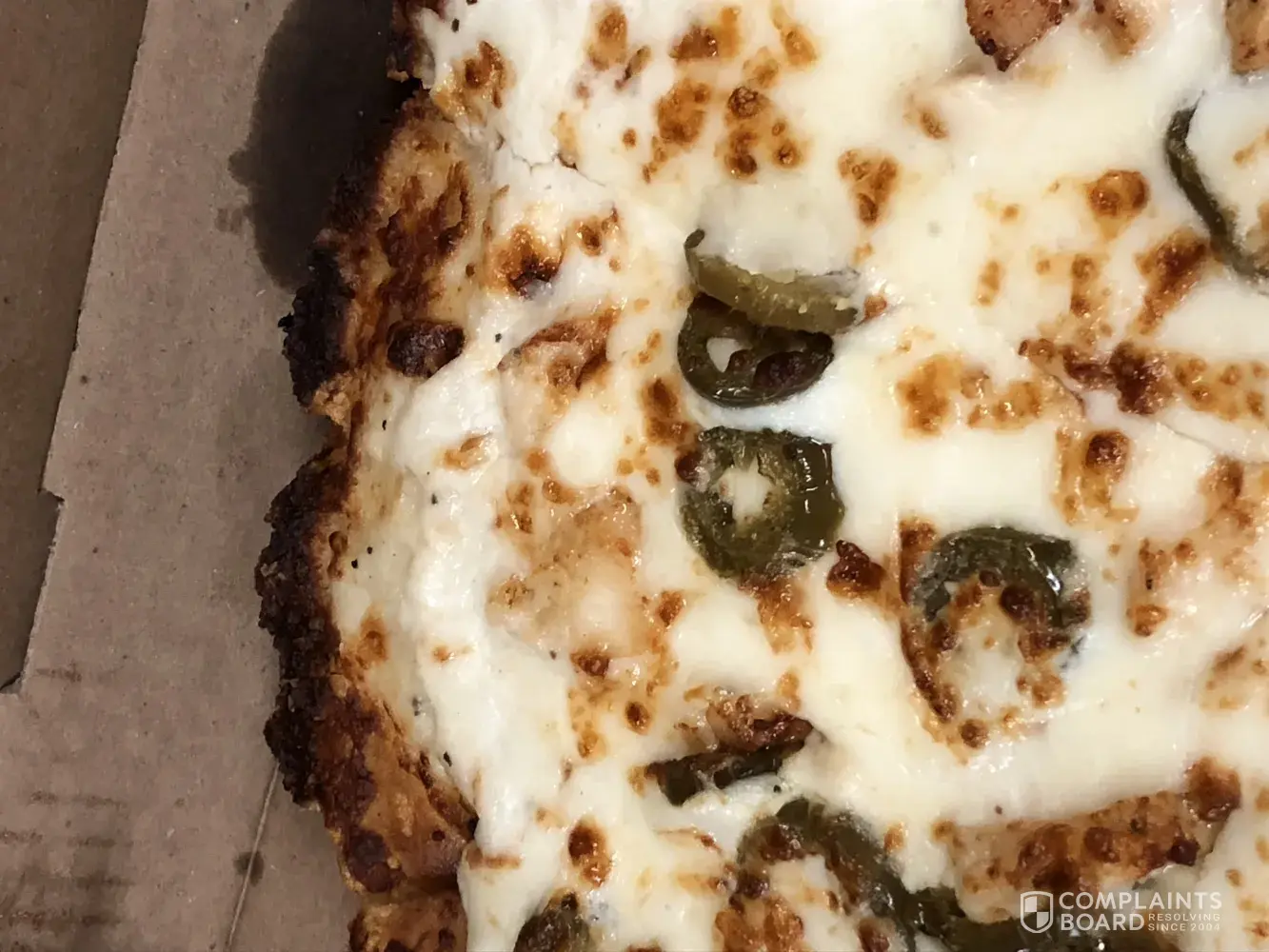 I gotta burnt pizza with a hair in it and the manager, Brian lied to me saying he would replace it. First, my cousin older a thick crust, garlic style sausage pizza with banana peppers and Brian (GM) delivered a burnt thin crust pizza with a hair. Called back, he promised to send a new one and did not. Called an hour later, and another "manager" said he left and said he's not sending ANYTHING. REQUEST LIVE CONVO @[protected]@gmail.com.