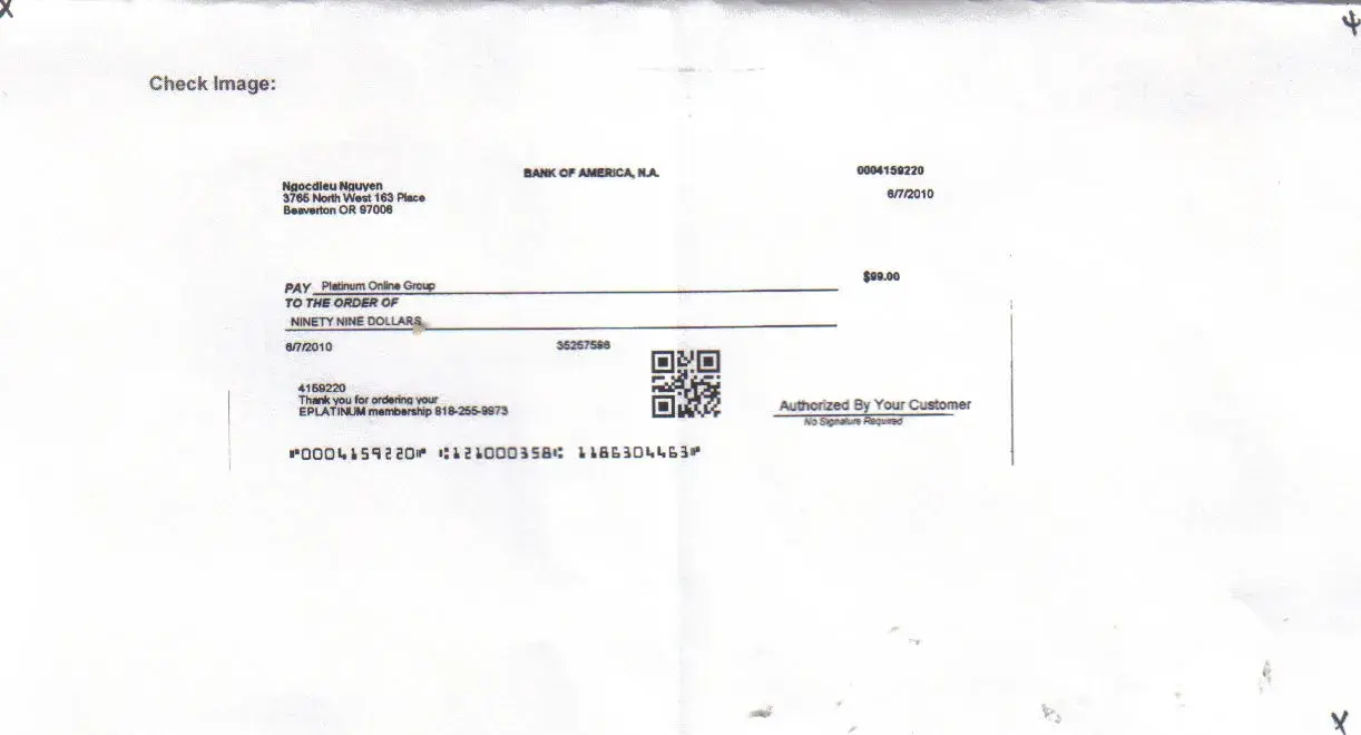 Platinum Online Group took$99 by scam check from my account from June 2010 - And I didn't know what is the check member..?