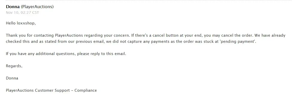 I've submitted a support ticket to PlayerAuctions on October 31st and have yet to hear anything back from them.