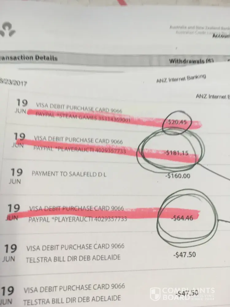 I have large transactions from play auctions on my bank statement - $181.15 and $64.46 on 19 june, 2017. Please call me on [protected] for details as I would like a refund.
