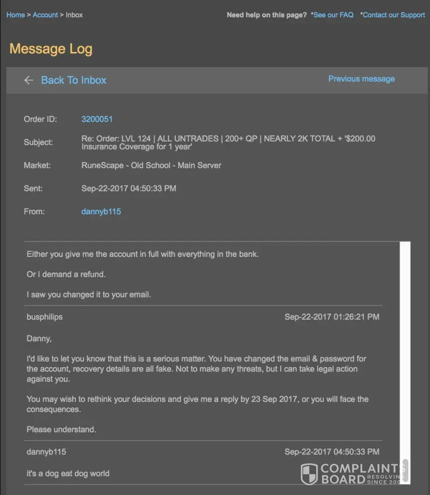 Recently, i've purchased an account (Osrs - runescape 2007) for $200 usd (With 1-year insurance) on playerauctions.com. The seller delivered on 18th september 2017 and the account had no problems. I changed the password, and email to my own, he also provided me with the recovery details.