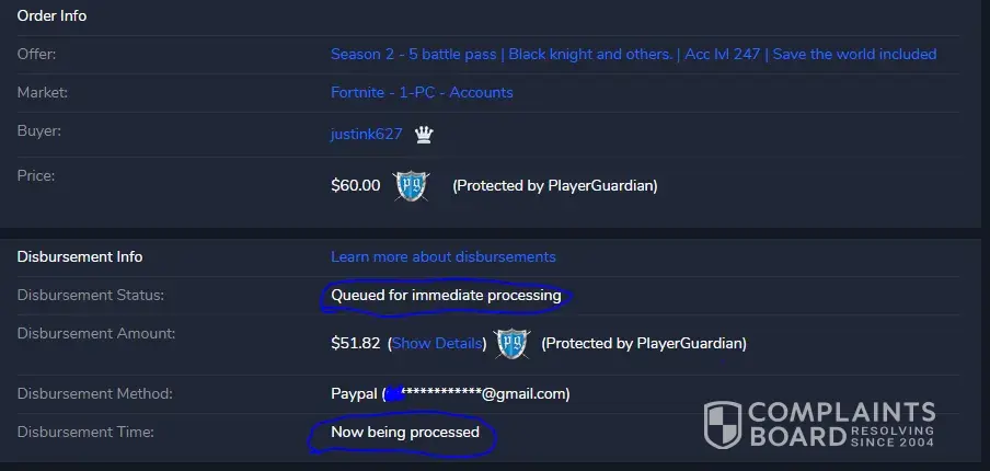 I then disputed all the orders in question with playerauctions dispute process. Waste of time! Over 1.5 months of sending them emails back and forth, playerauctions did absolutely nothing. They ignored my emails, ignored my refund requests, ignored all the evidence I provided, and released the funds to the seller without resolving my cases.