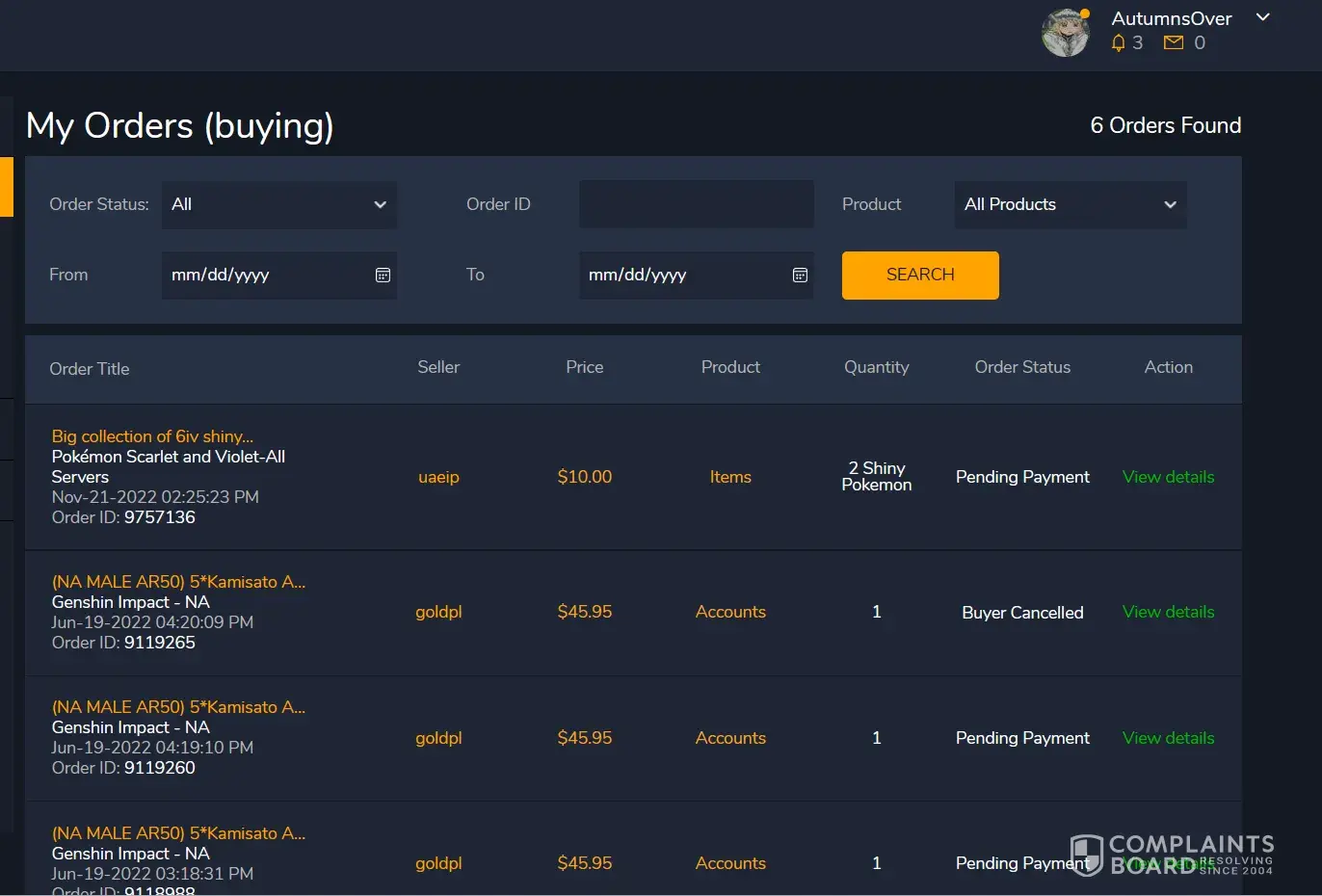 This was the link to the order -https://www.playerauctions.com/cod-mobile-account/181780361a!legendary-shorty3-lucky-draw-charactersgunzoscylla/?_ga=2.55570603.1454490957.1656850828-1161391260.1656850827&_gac=1.48898644.1657024972.CjwKCAjwwo-WBhAMEiwAV4dybXWIMOkM9slPBp40DaCvvU5PLffYc5H5pJdHQVfW44rn8JwYkE-cKBoCyhMQAvD_BwE