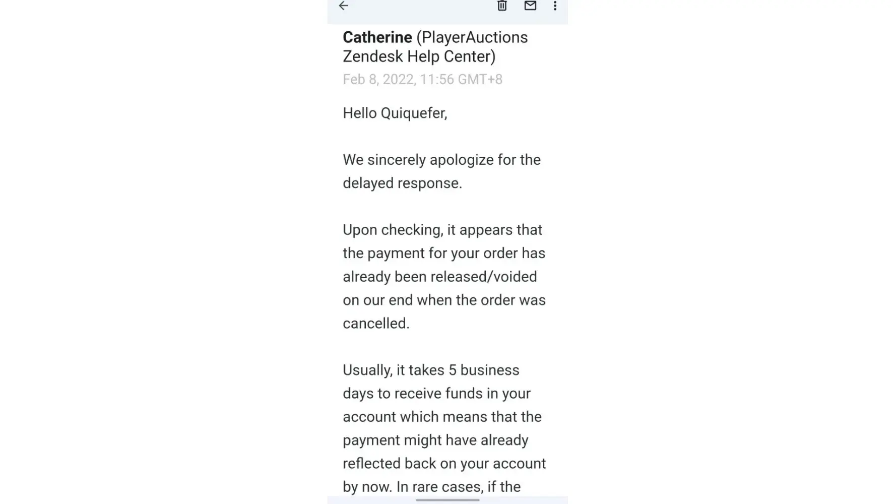 I had it on automated delivery so I was supposed to do nothing but wait for my payment. I read that I have to wait 10 days to get paid ( 3 + 7 days from After-sale protection). Today is Mar-8-2022 (the 11th day) since I received that message and still nothing. Am I supposed to wait for a bit longer ? Or does that mean that this guy didn't even buy the account at all and I need to put it on sale again?
