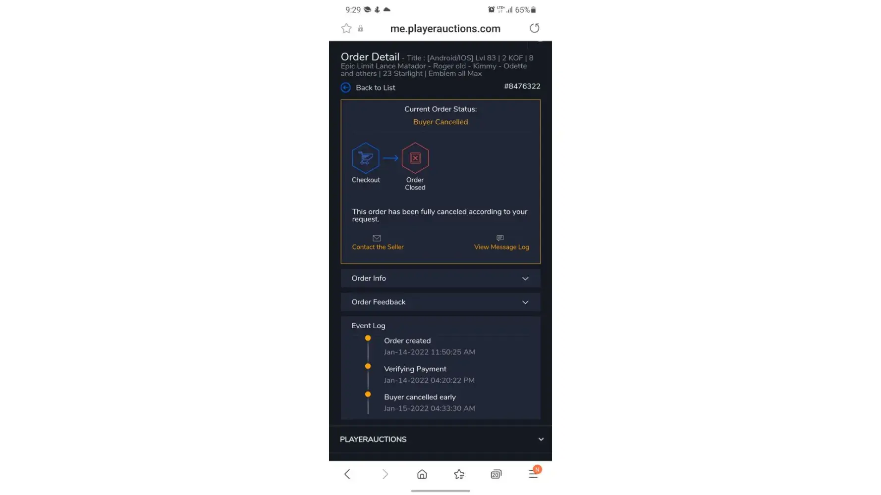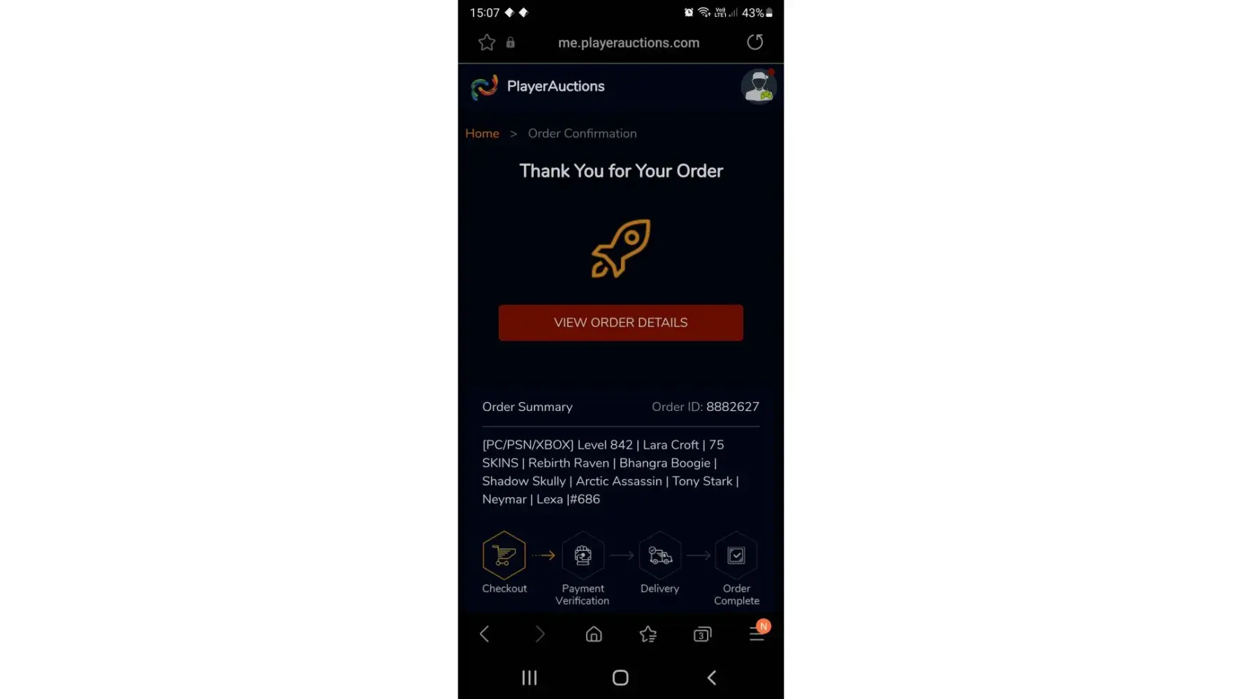 My playerauctions account