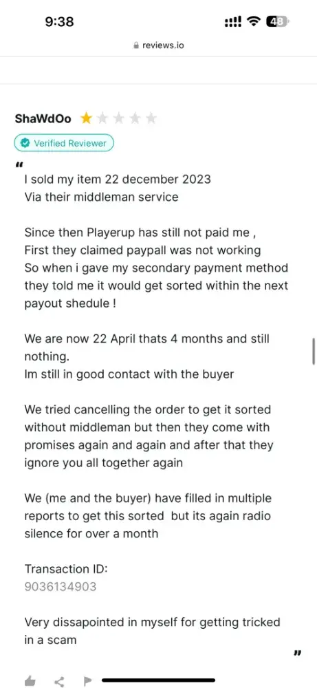 Based on my experience and the feedback I have gathered, I must warn everyone that PlayerUp is a scam. I am aware that this review might result in my account being banned for a fabricated reason, but I have no other choice. I have waited long enough for my issue to be resolved, only to be ignored.