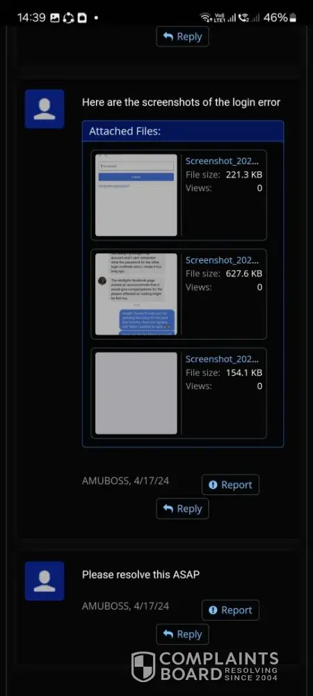 This complaint has been resolved automatically due to user's inactivity.