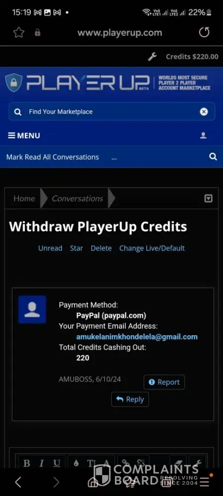 That page (playerup) is a scam, they never gave me my money, I wrote to them by telegram through the same website and they did not respond to me AT ALL, when I made my complaint on the opinion pages they responded to me to delete my reviews and they gave me my money and I listened to them and they did not comply, I am already tired, I no longer care about losing my money, I want everyone to know that this page is a scam, here I leave the images of the conversations, do not waste your money on that page. They threaten you with your money until you delete your review. To all those who have been scammed, file your complaint here https://reportfraud.ftc.gov/#/ so that the scamming page (playerup) can be sanctioned.