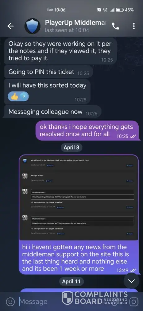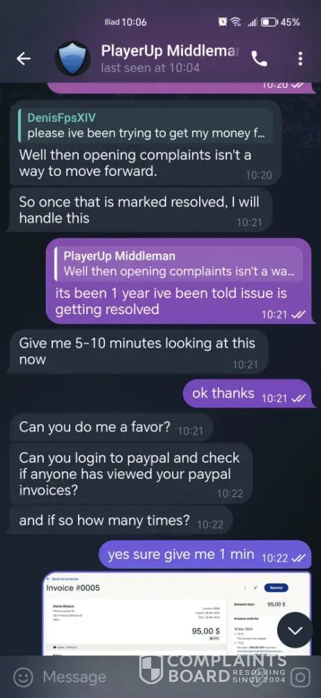 I sold a 7ds grand cross account over 1 year ago and till this day i havent received my money from playerup messaging them everysingle day on telegram always saying youre issue will be resolved but its been 1 year and nothing has been resolved all this for 95usd, sended them the paypal invoices they asked for nothing ofc, oh and forgot to mention they always go radio silence after you message them on telegram.