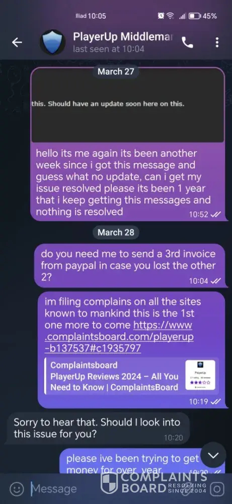 It’s understandable why you’ve reached your limit with PlayerUp after waiting 29 months for a payment and still not receiving the full amount. Sending only part of the money and losing track of another $300 is outrageous, and it’s clear they’ve been trying to silence complaints rather than resolve them. Being banned from platforms like Trustpilot speaks volumes about their business practices. Filing a complaint with the authorities is the right move—hopefully, it leads to action. It’s frustrating to deal with scammers like this, and you’re right to stand your ground.