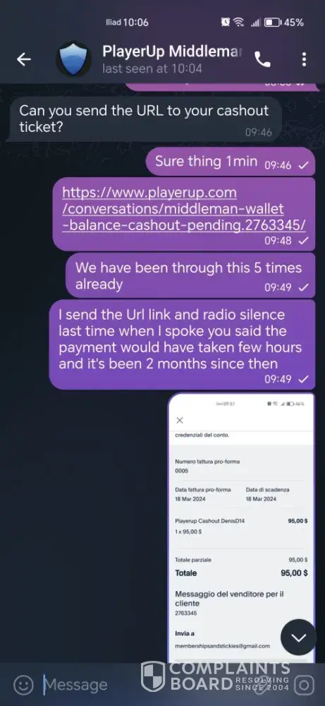 Three months ago, I sold an account through the PlayerUp platform. I received confirmation that they had been paid. But I haven't received the money. All my attempts to contact them have been ignored. I read that I needed to submit an ‘URGENT TICKET’ — I did so on 25/09 but didn't receive a response. I also sent them an email.