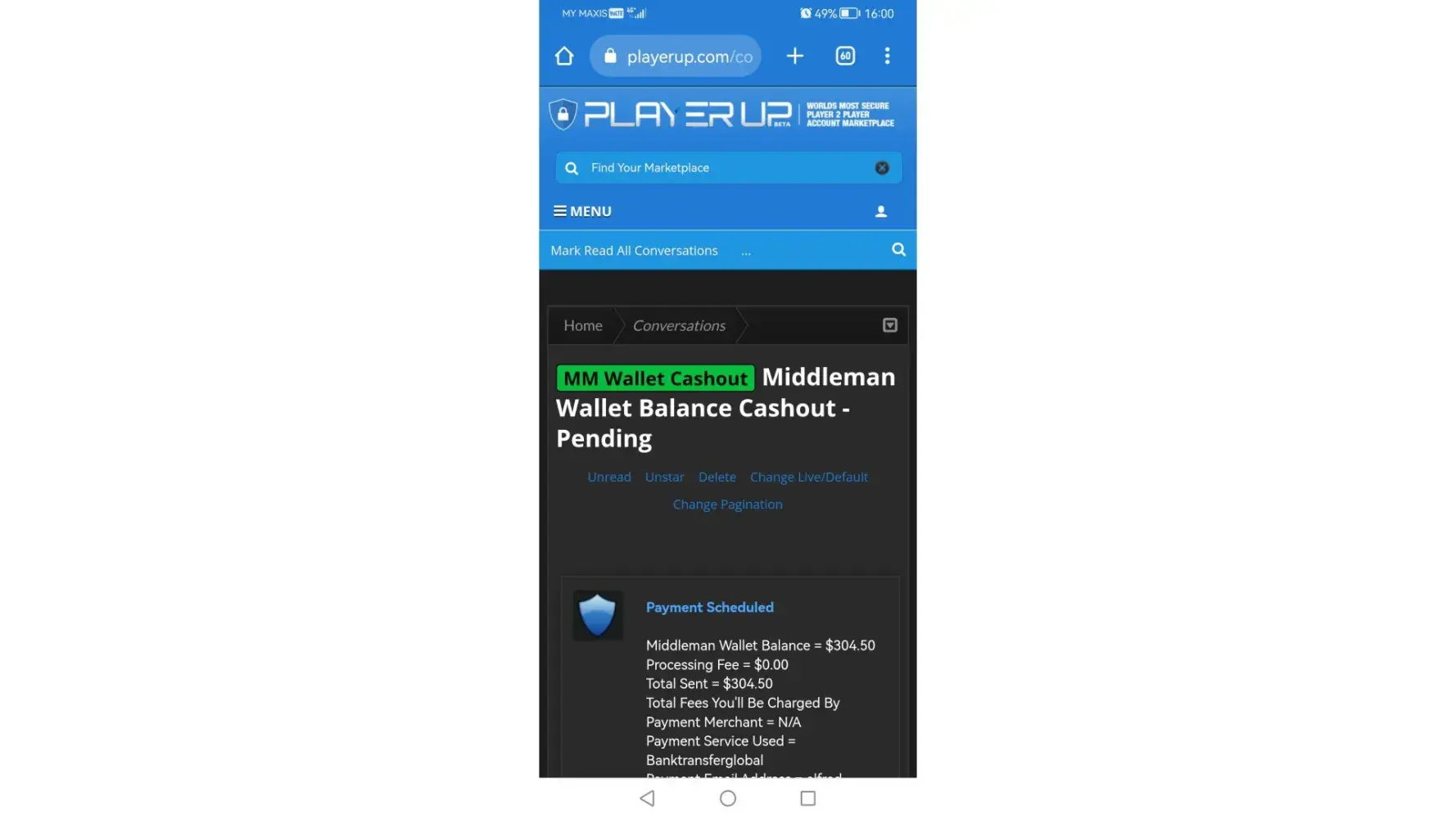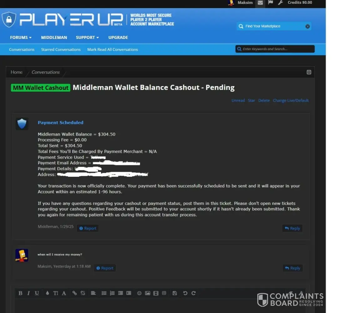 In January 2025 I sold an account on playerup.com using middleman services. But middleman does not pay me my money. The site support ignores my messages. In the telegram chat there are only empty promises. I will update my review later.