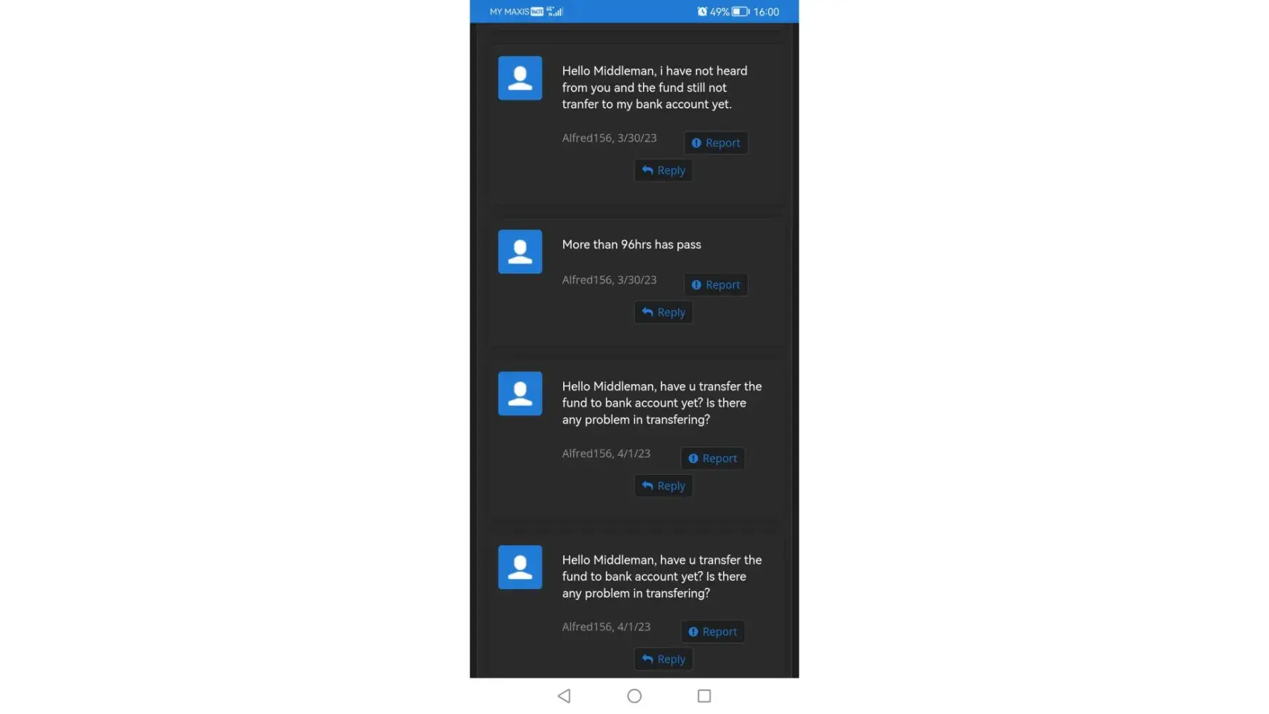 I paid for an order week ago and middleman is not answering. There is absolutely nothing from they side. Not even a one word with reply. I think it's simple scam and nothing else.
