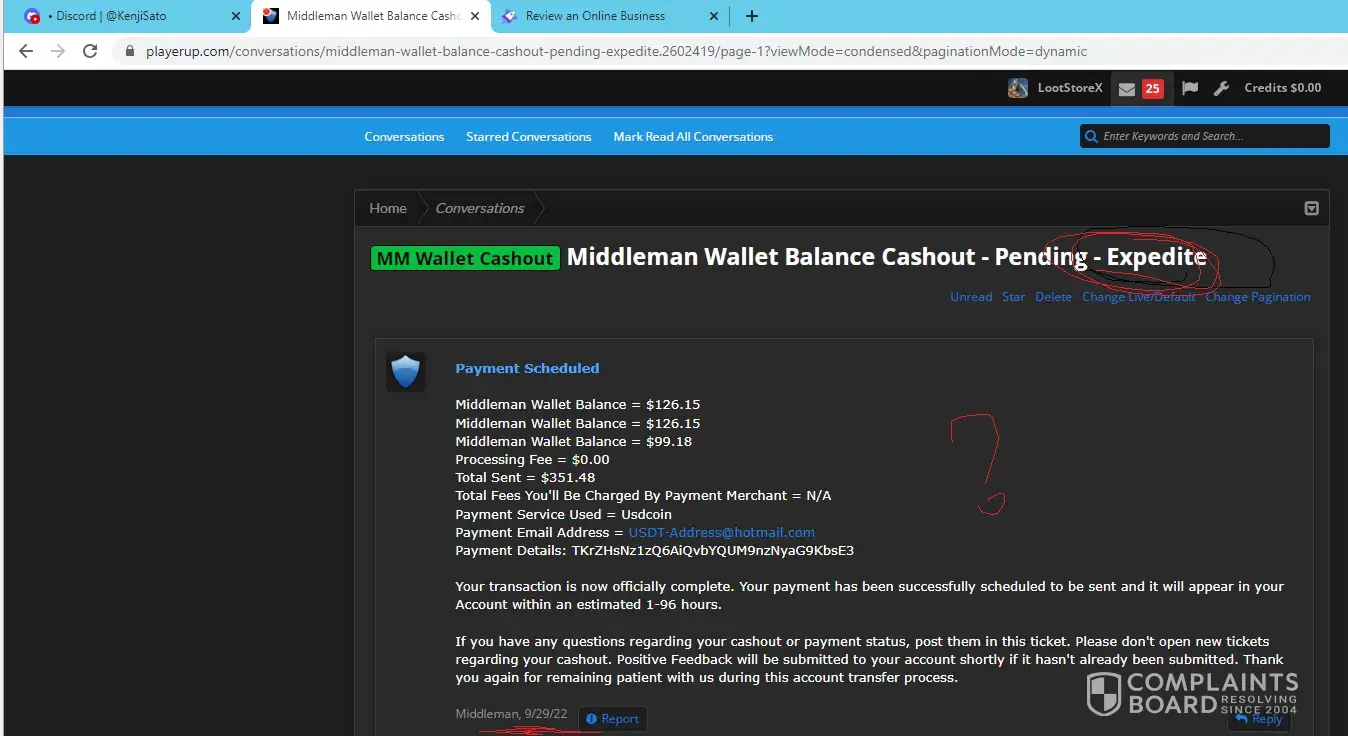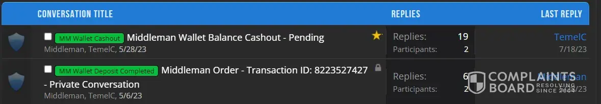 Cashout ticket has been there ever since without any payments. The middleman is out of reach and never replies neither on site nor on discord.