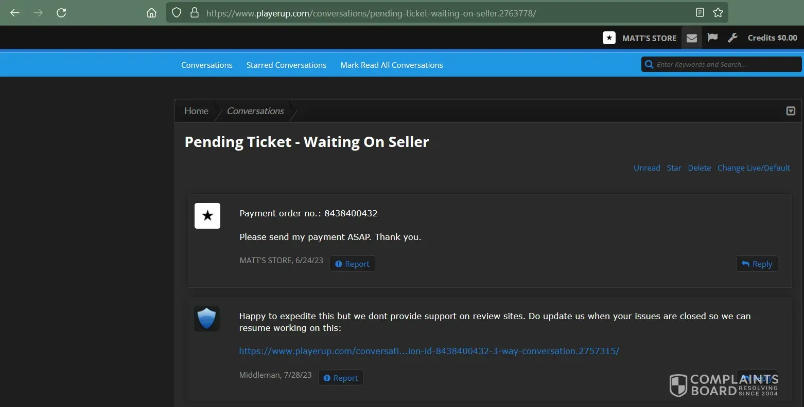 PlayerUp have reached out to me to resolve my issue, I have been using their service for years now and no problem if you want your issues solved contact their support on telegram they will help you