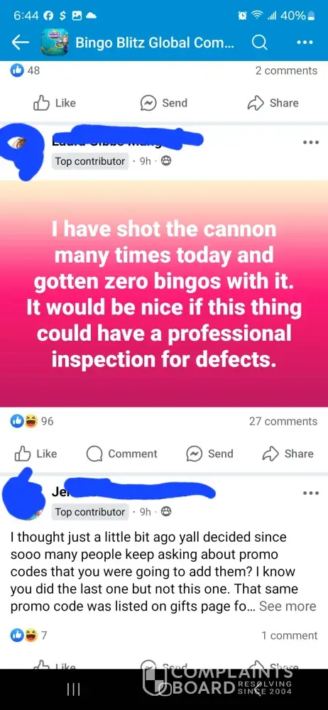 Over the last two weeks I have purchased 7,000 credits. I have been sitting and waiting for 22 in fire trunk. And over a week never seen it until yesterday. I was doing great getting bingos at least one every game until it showed up and then didn’t get even 5 daubs on that game. Not even just that the game has been kicking us out, lagging really bad, and freezing during games causing people to loose out on credits and then having to go another week before seeing the ungiftable they need to finish.. I am so tired of complaining to the worthless customer service and being credited a lousy 200 credits. The only time the game allows you to get ahead even just a little bit is if you down over $100 on their packages which are not fair. It should never cost that much for 6500 credits. That’s insane. And then customer service sends you some random message saying this is by chance which is a blatant lie. They use algorithms to pre determine your winnings. So they choose to let you win or not. Which is crap. No one should ever have to go days, weeks, or months waiting on one sticker to win a game that you don’t even win real money on. You have a better chance with slot machines than you do bingo blitz. Or go spend your money to play real bingo. thus game is not even American owned. It was bought by a Chinese consortium. This game needs to be investigated for fair game play as well as the price of the cards to what you win back in return if you down bingo. It’s completely insane to purchase cards for 150
