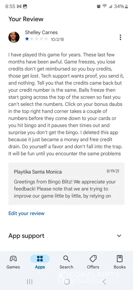 This, in my opinion, is just blatant dishonesty on Playtika’s part. They asked for and received proof of the purchases and are simply ignoring the evidence. So pitiful that a company of this size needs to stoop to ripping off its customers.
