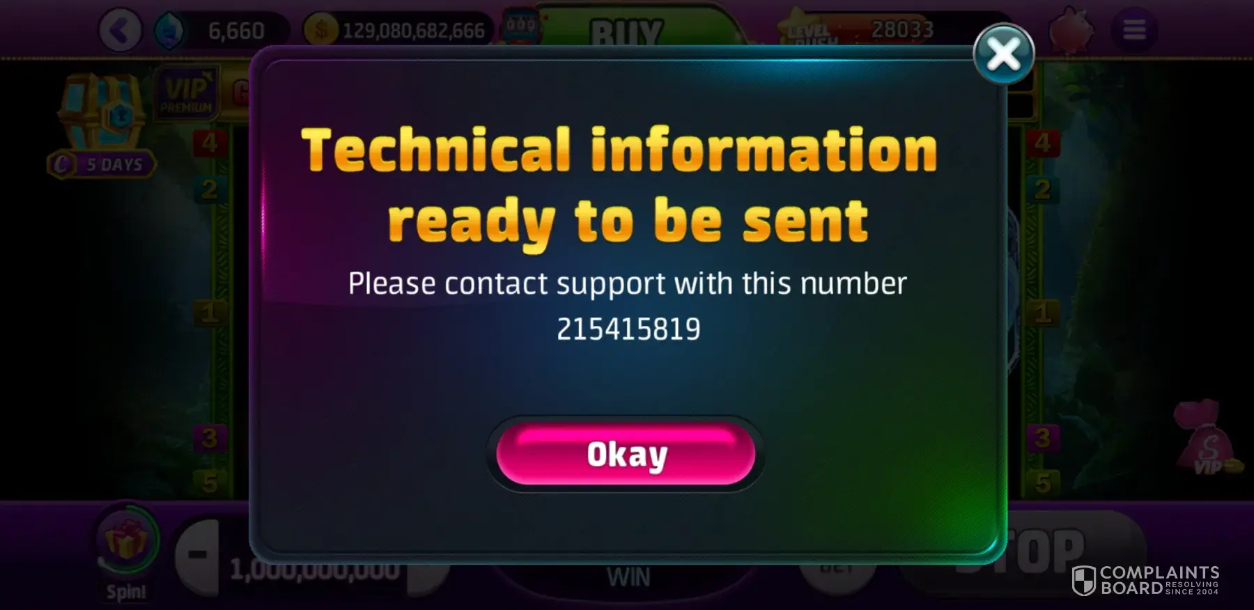 I have been trying to retrieve coins that were taken out of my account due to glitch in the slot machine not working properly the glitch causes me about 25.000.000.000 billion coins I contacted the support group for help to get coins replaced. The support person said they had problems with other players with the same problem as I did coins have not been replaced as of yet. I have made several tickets for help can someone please help with this problem. I would like my coins retrieved back to my account. My ticket number is [protected] I have made several tickets for help. This happens on the 4/10/20 I have sent complaints every day since this problem occurred. Please help me with this problem. [protected] The support staff know there was a problem and confirm with me I have the E-Mail where they admitted there was a problem.