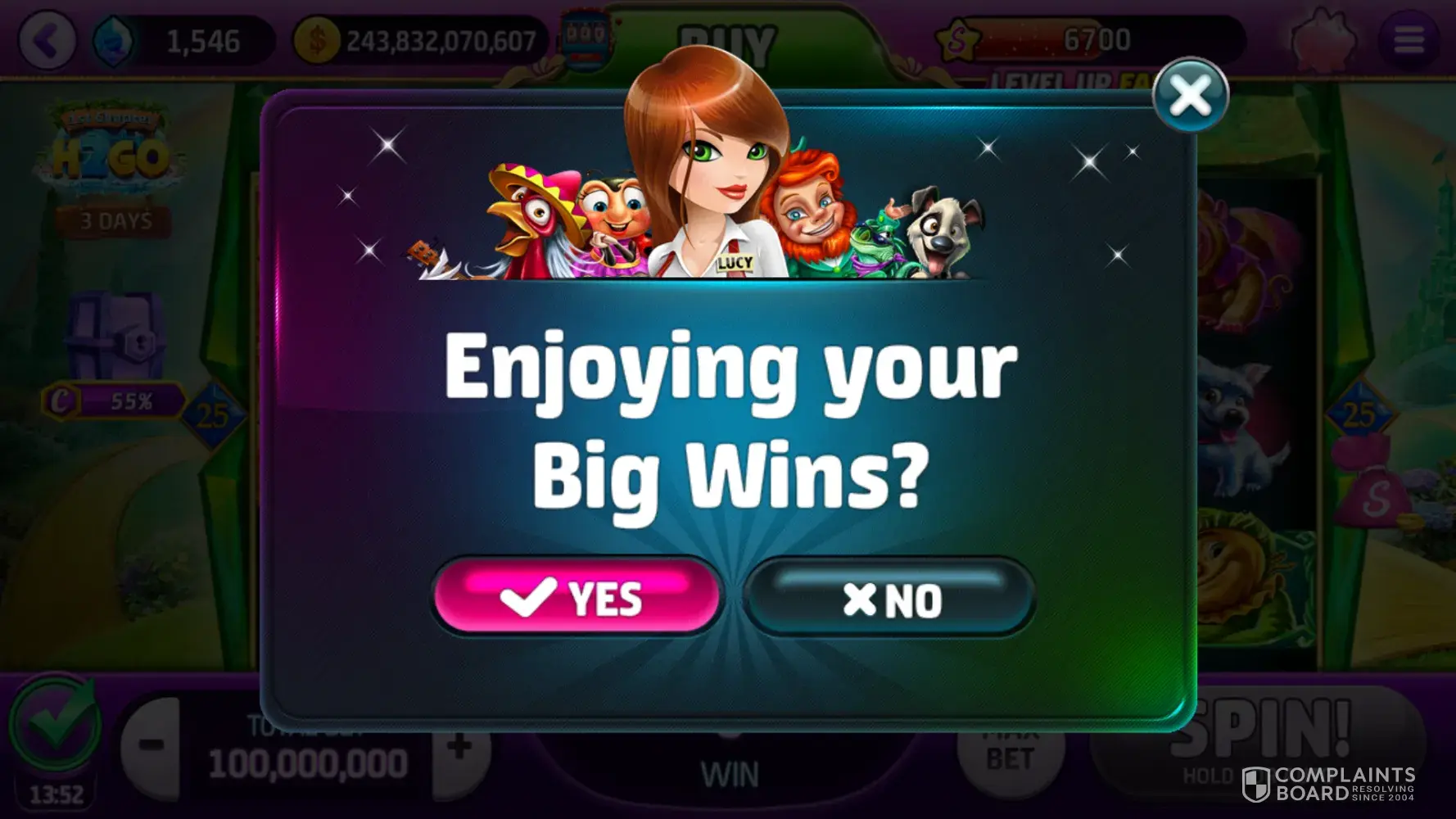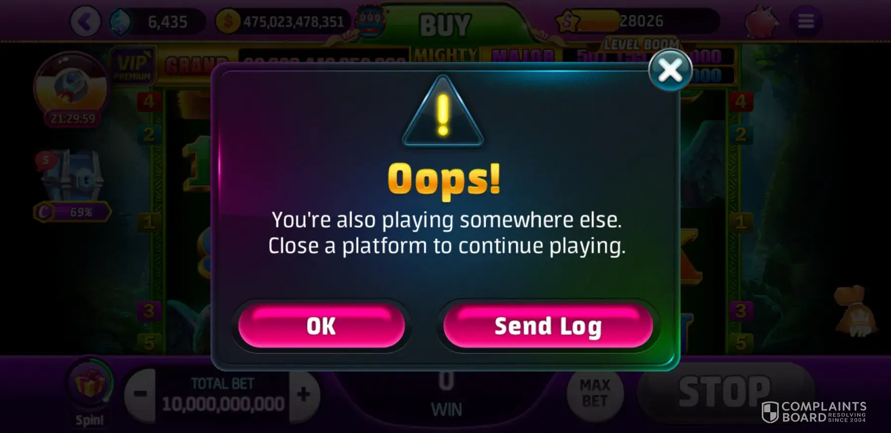 Playtika you have a pattern, we loyal players buy buy buy to lose, bu tg after about 4 to 8 weeks we get a winning streak for about a week, then a corrupt popup stating I'm playing somewhere else which is a lie, then get booted come back and all your winnings seem to go, you put is back on the losing streak till broke and for another 4 to 8 weeks guarantee you will lose. And then I send emails regarding that fraudulent message and what happens, send in my error log number but you never can answer because it's a way to get more real dollars from me. Cause you are doing it.