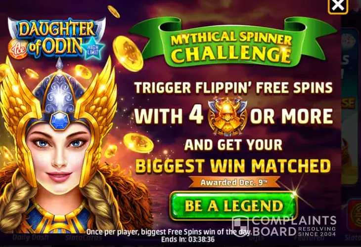 I won 480 billion virtual coins on the mythical spinners challenge and activated the 4 x scatters that then qualified me for them to match my biggest win of the day .I only received a little over 200 million coins not the 480 billion that was my biggest win of the day. It clearly states biggest win of the day using free spins .