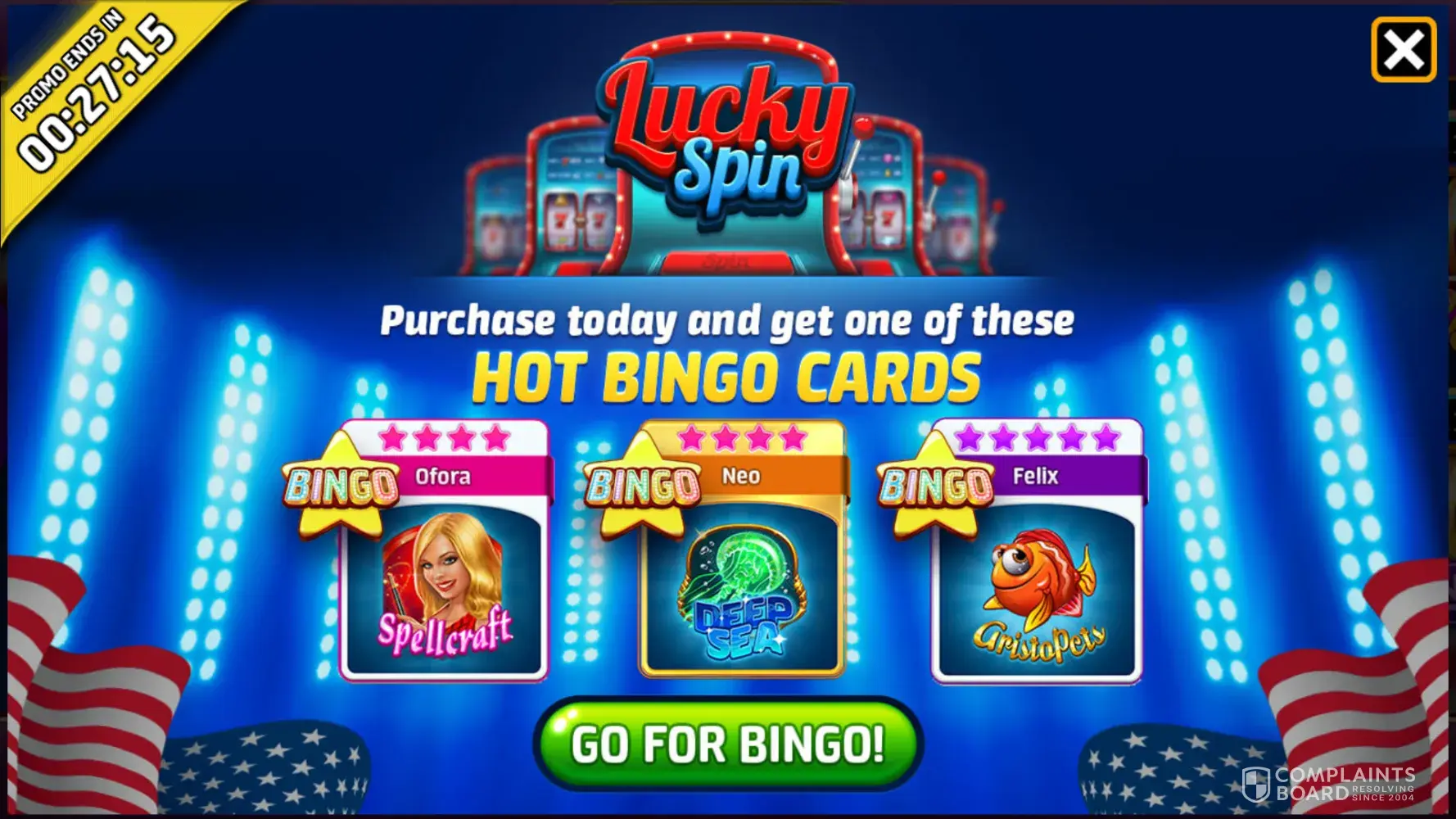 When the bingo game was going on I bought some coins because it says that you will get 1 of 3 hard to get cards I never received any and filed a complaint which I never had a response with one of those cards it would of made me hit bingo twice 1 for golden bingo the other line regular bingo. Also I should of got a chance to spin the lucky spin wheel but nope didn't happen they did however Try to charge me more to spin with a higher oayo u t which makes no sense. Also the time before I was supposed to get a shaker to do and never got it. You guys need to be better at fixing glitches and answering concerns.