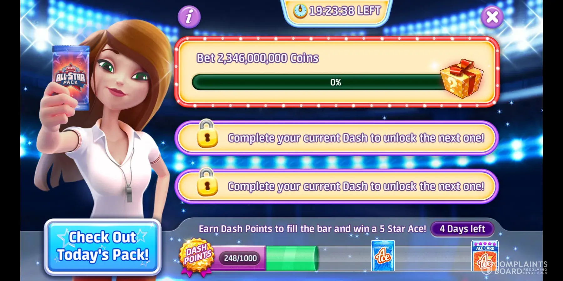 First thing they had said if you got thru all 4 blasts you would get your choice of a five star sloto card. I bought extra picks i think 8 times because I thot I could pick the lotto bonus card to fill up the slot fiesta album and get 23 billion coins. I went thru all 4 boards once and picked the slotoclubber card. So i went to do all 4 candy blasts. Did that today and instead of letting me pick a card they picked one. Of course I had the one they picked. I think I should get my card and 23 billion or get my money refunded.