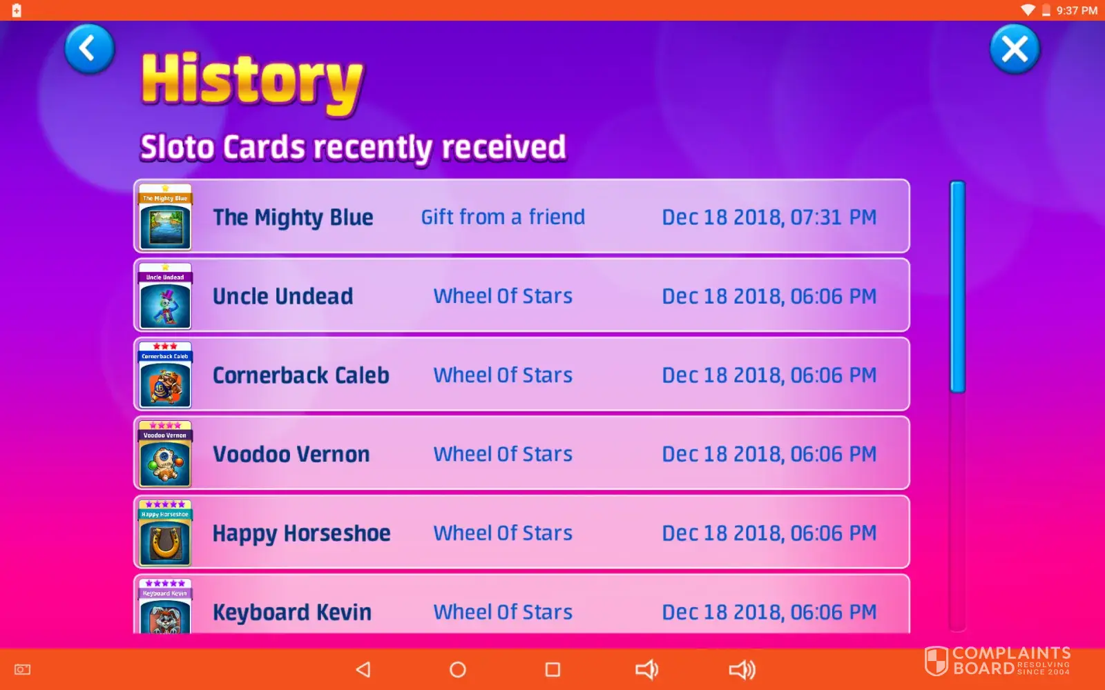 I have been reporting all the stuff for over a week but no one is there. Nothing . I was able to work up to 2, 000, 000, 000, 000.And, everything went wacky. Couldn't into any I wanted. things just stopped and that was it. over over and over, just took the money and coins. And, out it goes. I think you will be closed down soon. You took so much money but then nothing worked. went out spinning black. a white big card in the middle. with the exclamation mark in the middle, I swear this game is abusive. And, you have too many lines and too many ads for money.No wonder!