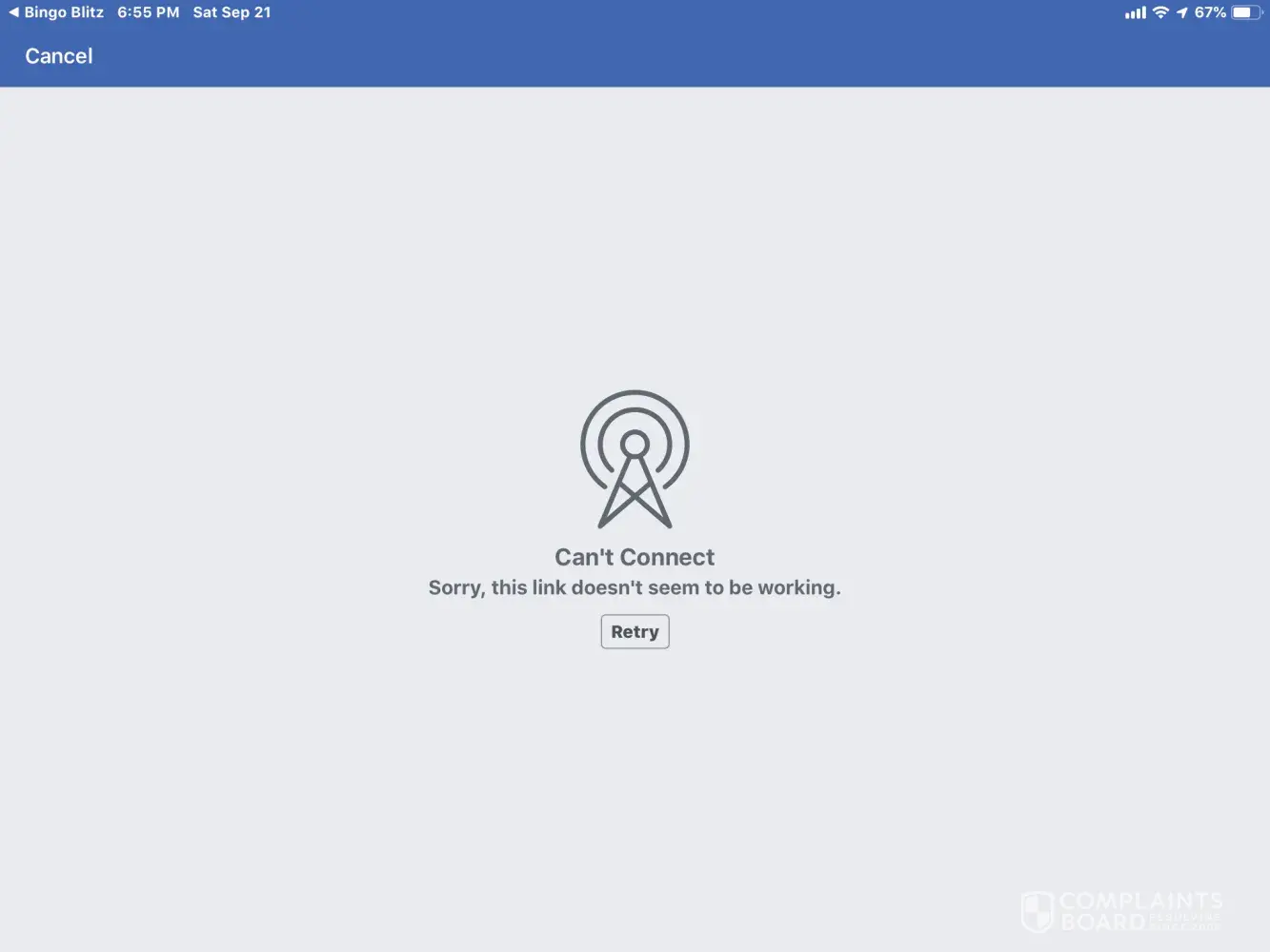 9/19/19-9/20/19: I am unable to load Bingo Blitz on both my iPad and computer. They ask me to connect to Facebook (which it’s never been disconnected from). When I do, it tells me the “link” is broken. I can’t submit a ticket because it tells you that you have to submit it within the game...which I can’t connect to! I’ve send messages to a dozen friends around the US and they aren’t having any trouble. ALSO, on my computer the game app has disappeared from my Facebook apps!