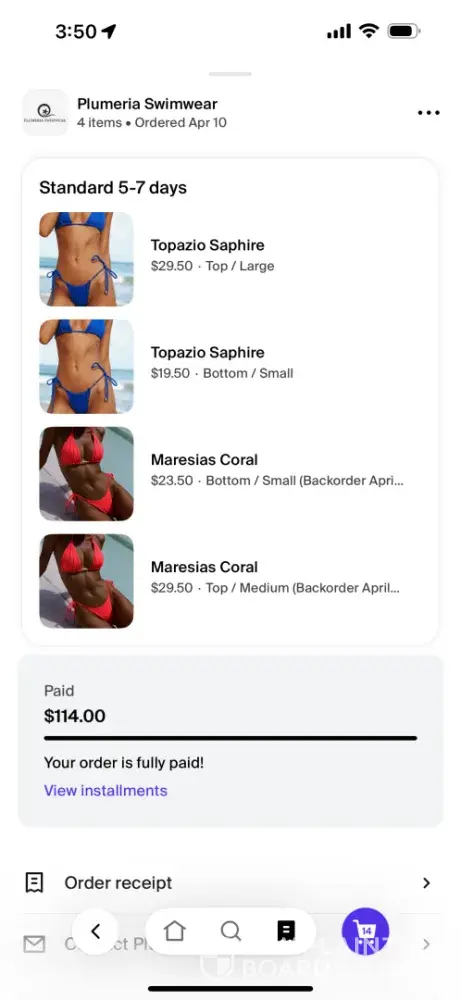 Plumeria Swimwear Payment not received