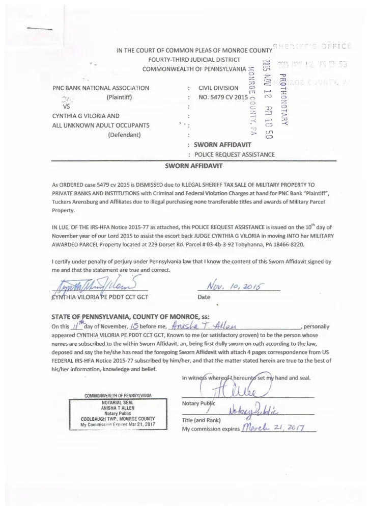 Abducted at HSF since 2007 whereto World Bank and US Contract # 7045 “NEW YORK HARBOR” worth $780 trillion HOLD and "“LORD CYNTHIA D GUNDAN BUILDING 1-126”", WB and US GOV. CONTRACT # [protected]. My Military Properties had Intrusions even all Non Gov Offices using illegal tax sale w/ series of fabricated cases by PNC Bank holding me for 10 years.