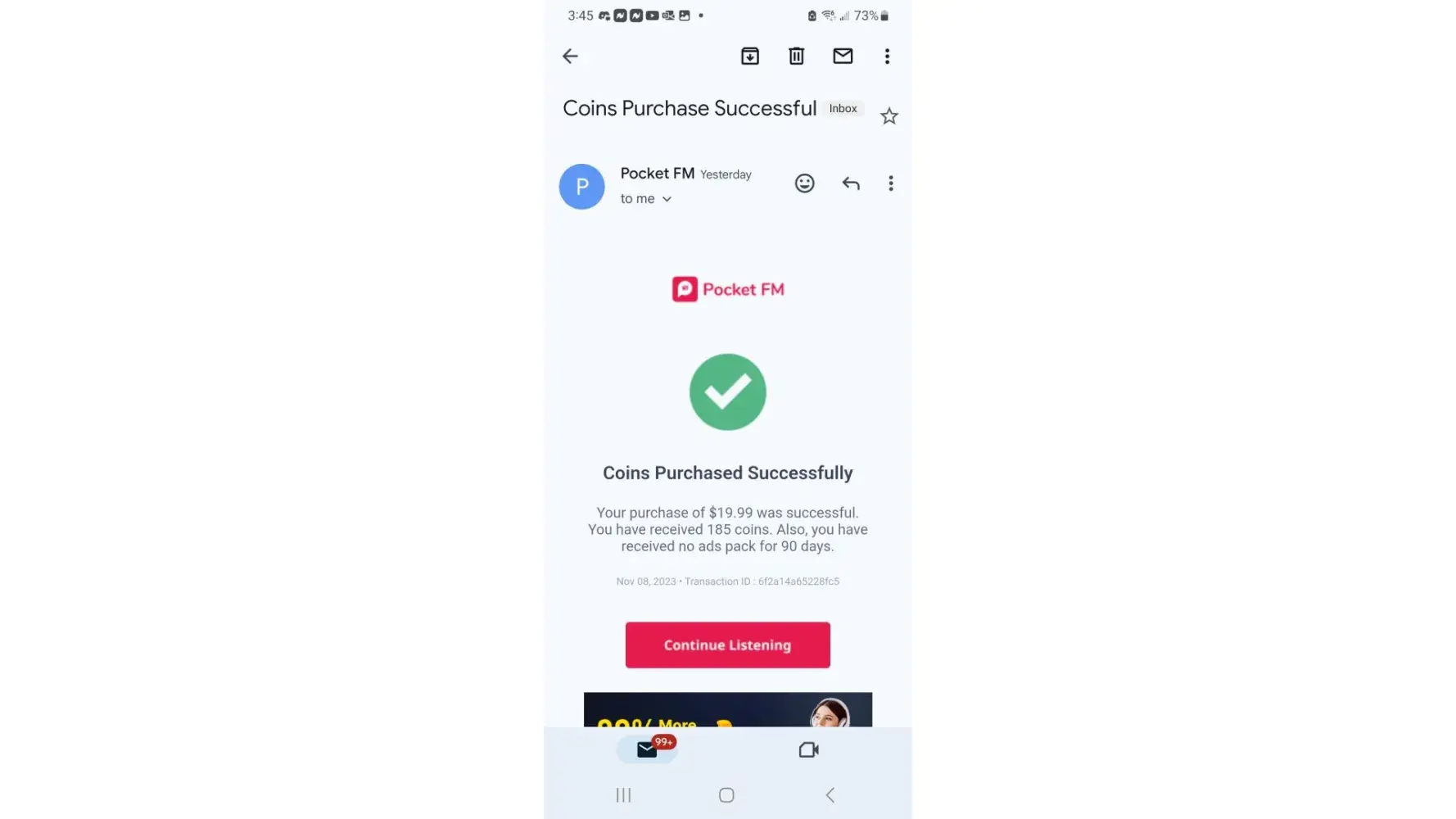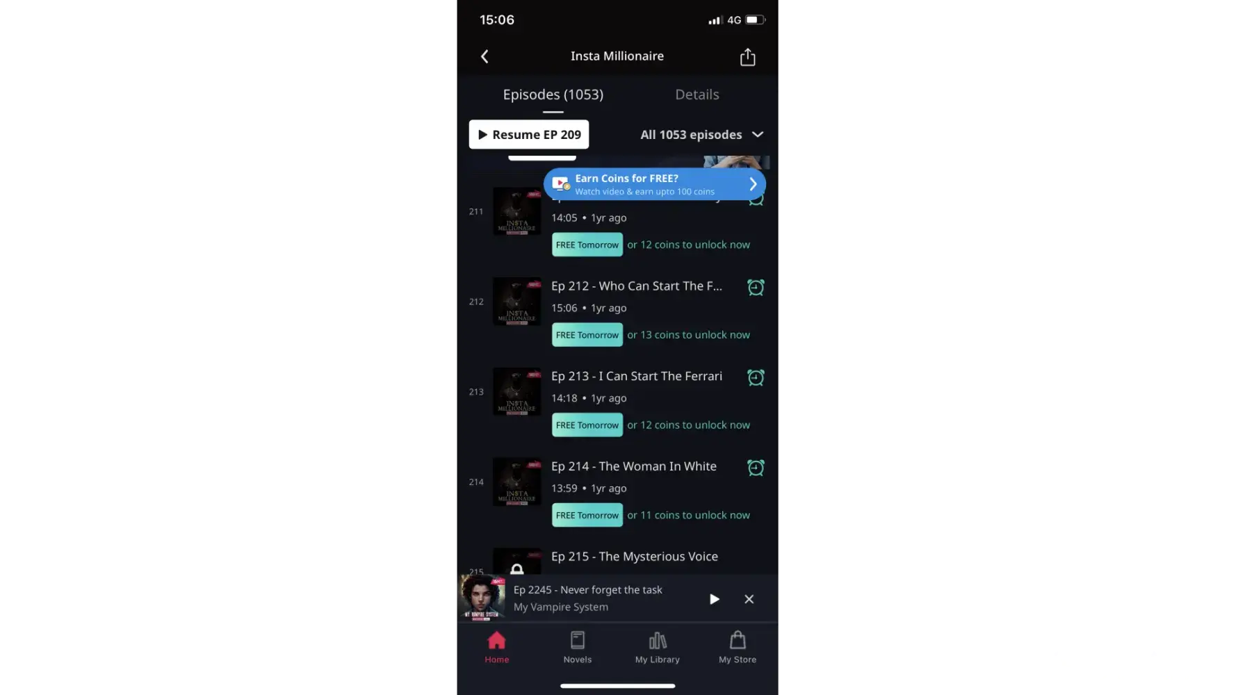 When I first downloaded pocket fm, I really enjoyed the story I was listening to. I found a few other stories that I started listening to and through trial and error, I finally found 4 that I really liked. I eventually ended up spending money for coins so that I could continue listening to a couple. I got so far ahead on one of them that I won’t get free episodes until March of 2024. I accepted that and went on to listen to my other 3. I again purchased coins to listen a few episodes ahead on them. This did not interrupt my daily episodes. I was getting 5-7 episodes a day on the 3 books I was listening to. A few days ago, I noticed that I only had one episode released for me to listen to. I thought maybe I didn’t listen to all of them the day before so I listened and let it go. The same happened the next day and the day after that. When I emailed the company, they said that they only release one episode a day. Not until recently did they change that. They just want me to spend money to finish listening to the stories. I fell hook line and sinker for this but I don’t recommend this to anyone unless they have plenty of money to spend in order to get to the last episode. They wait until you are 500+ episodes into a story before they pull this. You only have another 500+ episodes to go and at 5-8 coins each episode, you will dish out some bucks. For me from now on, I will try other ways of finding books to listen too or read a printed book. I do not think this is right but what ever