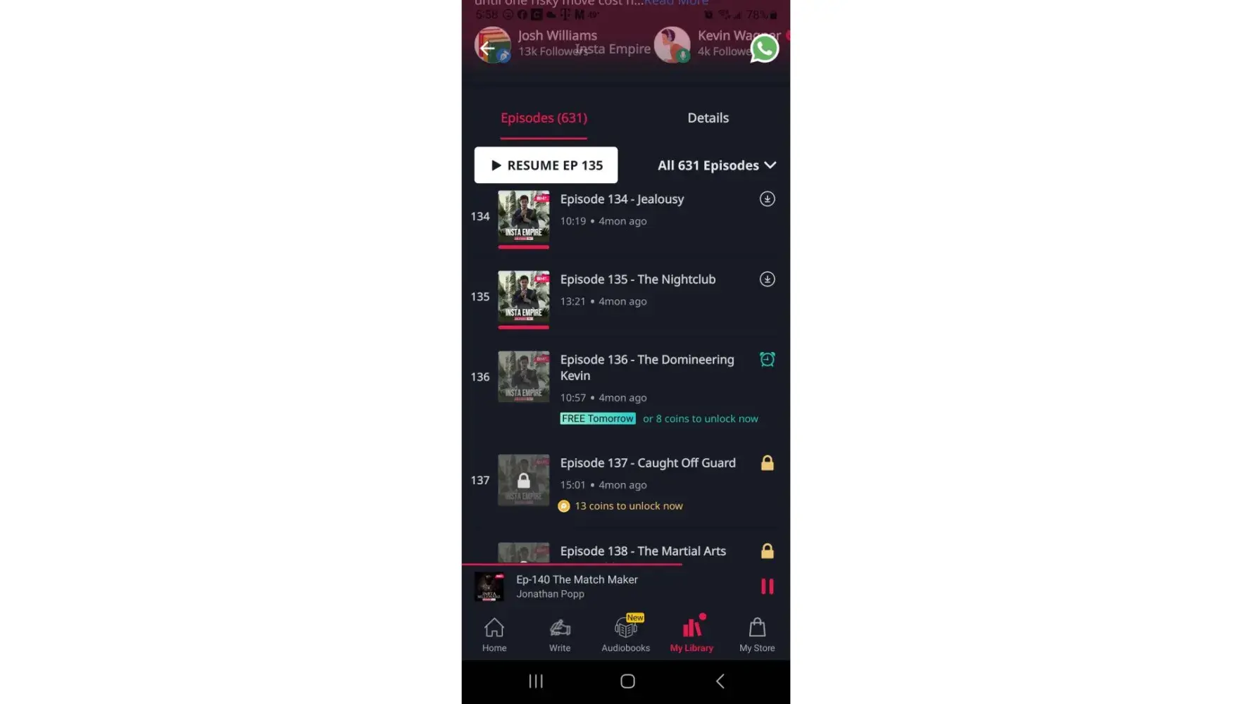 It got me furious! It is a scam!It got me hooked after listening to few episodes and played and watched videos to earn coins to listen episodes. After getting tired of playing, i decided to buy 4.99 worth of coins which i got an email that i purchased 45 coins. After i listened to 3 episodes (15coins). It is again asking me to purchase more coins to continue. What a scam! I sent multiple email which they replied to tell me that I only paid for the 3 episodes. 3 episodes is not 45 !