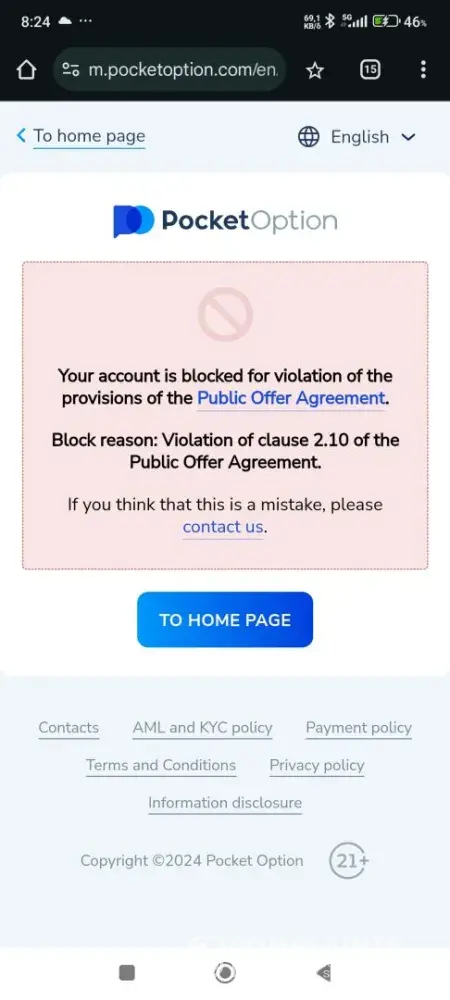 Pocket Option Pocket option blocked my trading