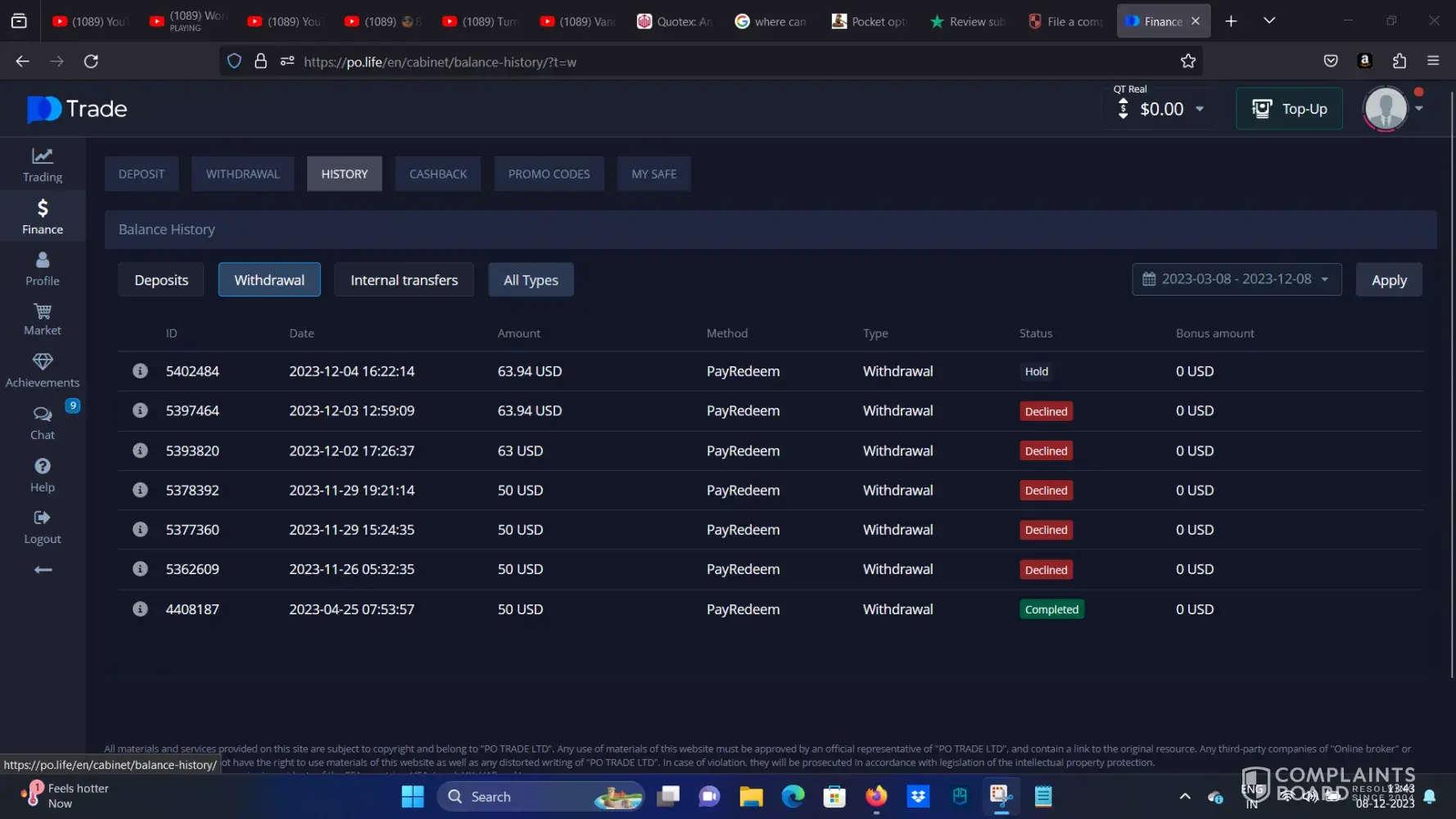As somebody who recently utilized the services of Pocket Option, I have to say that I was extremely disappointed with the level of dishonesty that I experienced while dealing with them. One of my biggest issues was their tendency to change the withdraw limit on accounts without any warning or explanation whatsoever. This made it incredibly difficult for me to plan my financials and take care of my expenses in a timely manner.