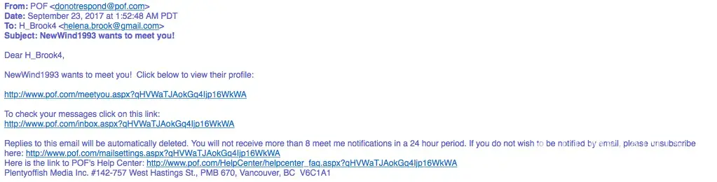PoF.com / Plenty of Fish fraudulent account