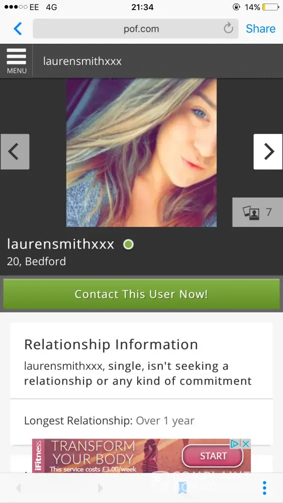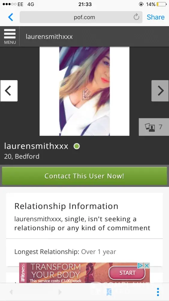 PoF.com / Plenty of Fish fake profile and pictures