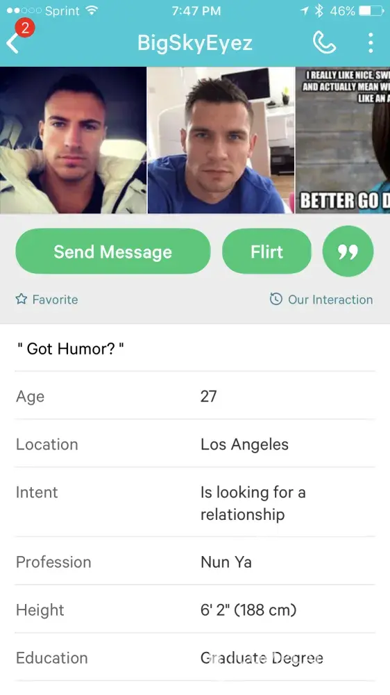 There is a guy who keeps creating a fake profile using the same fake pictures and same exact description. He gets reported and deleted but makes a new profile right away. There needs to be a way to verify photos and some way to see if the same image keeps getting uploaded that he can be blocked. Maybe block his IP address. I'm worried he may be dangerous since he is so persistent with making a new profile each time he is deleted. I know it's fake because each time he puts his age as 27 and says at the bottom of his page that he messed up on his age.