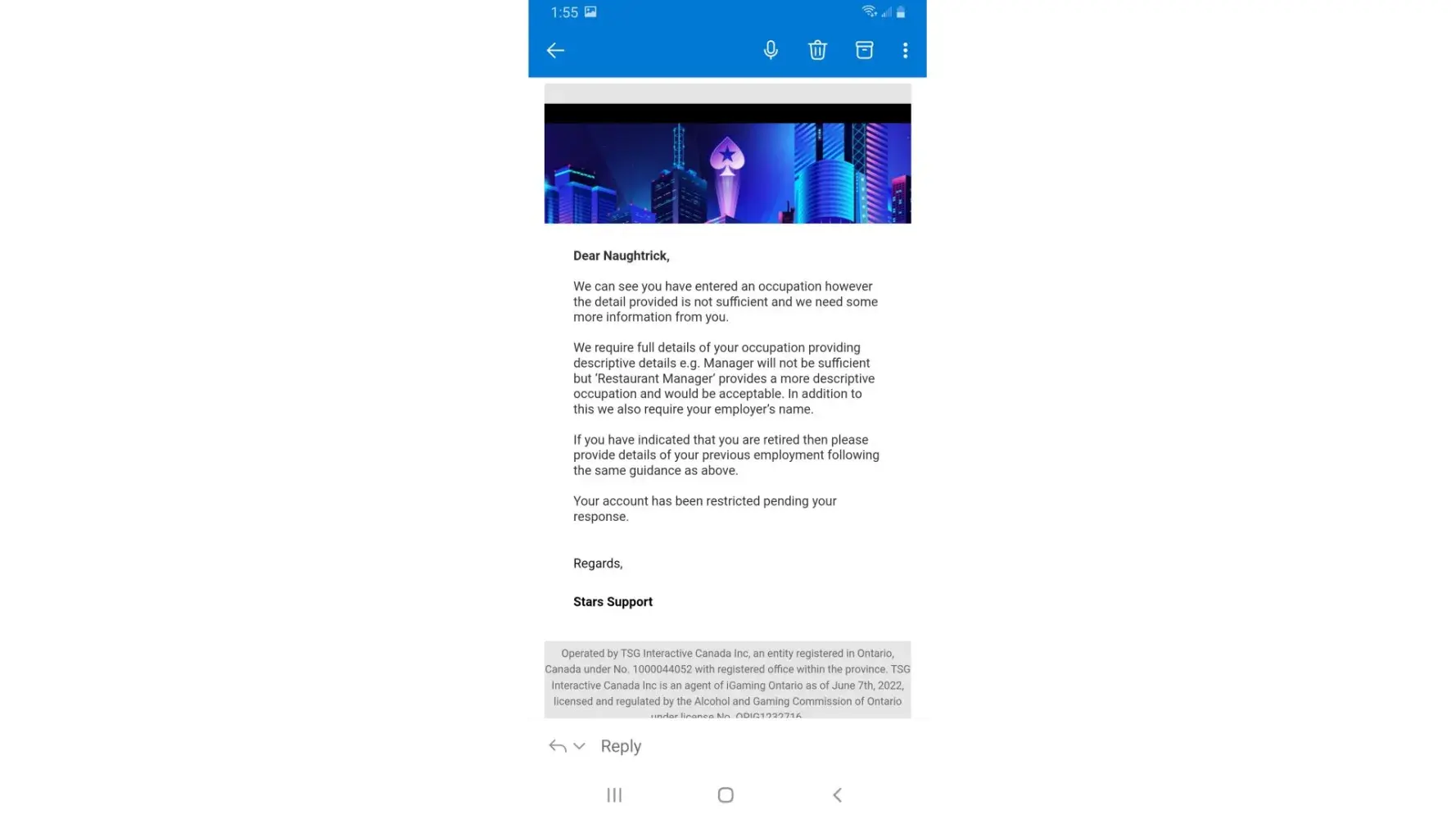 They first emailed saying i cant play on there casino games but can play all there other producs including poker then they email saying account closed
