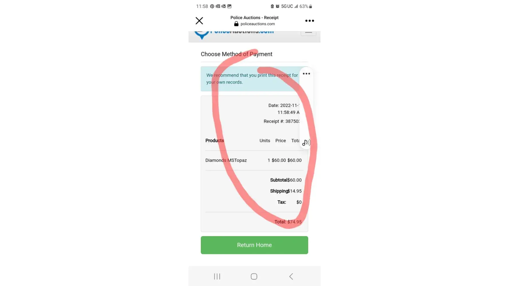 I visited the Police auction website and wanted to bid on an item. I won, I paid. I just reviewed by bank statement and for 4 months I have been receiving a charge of 7.95. I absolutely did not authorize a monthly payment or sign up for a subscription
